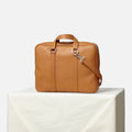 The spacious main compartment carries your documents, there is a padded laptop sleeve with a tab closure on one side and two slip pockets with a pen slot on the other side. A large zipped hidden external pocket for your essentials. The briefcase fits your documents and a couple of books as well as a 14 inch laptop and charger, a light jumper, a notebook, phone and other essentials.